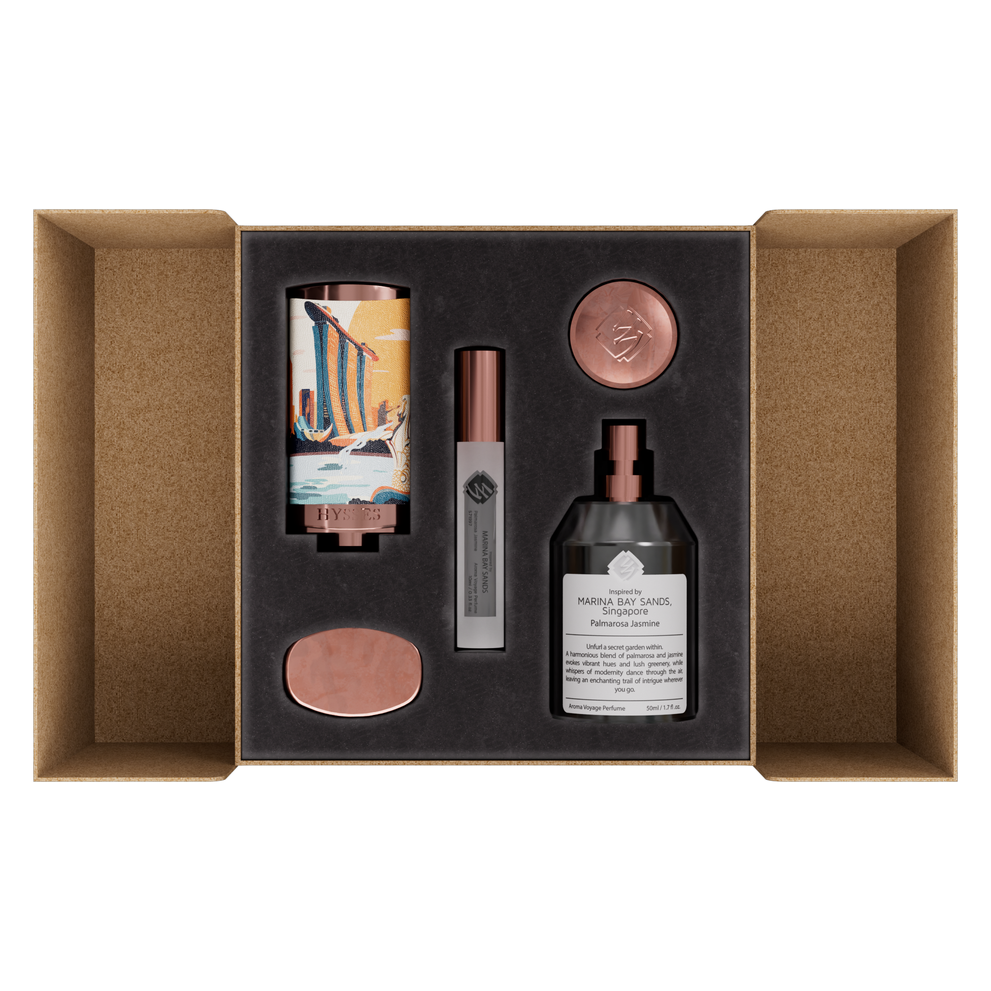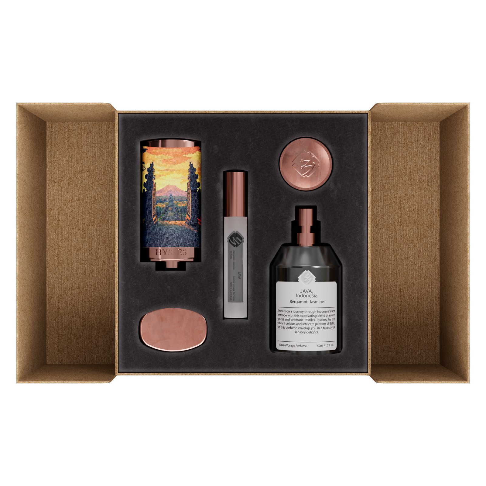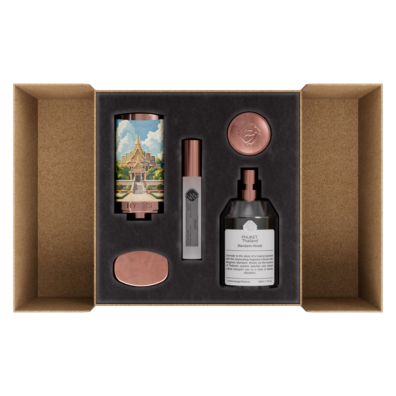 Aroma Voyage Perfume invites you on a sensorial journey with five luxurious, 100% pure essential oil blends, each evoking unique destinations and therapeutic benefits. Every spritz transforms scent into a ritual of memory, mood, and moment.